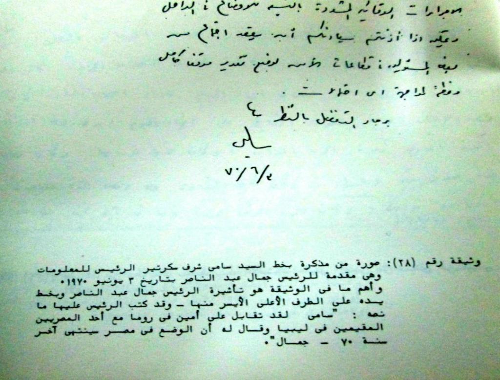 تاريخ تأشيرة الرئيس عبد الناصر على المذكرة هو 28 يونيو 1970 بعد 25 يوم من رفع المذكرة إليه ، وقبل 3 شهور من وفاته المفاجئة!!
