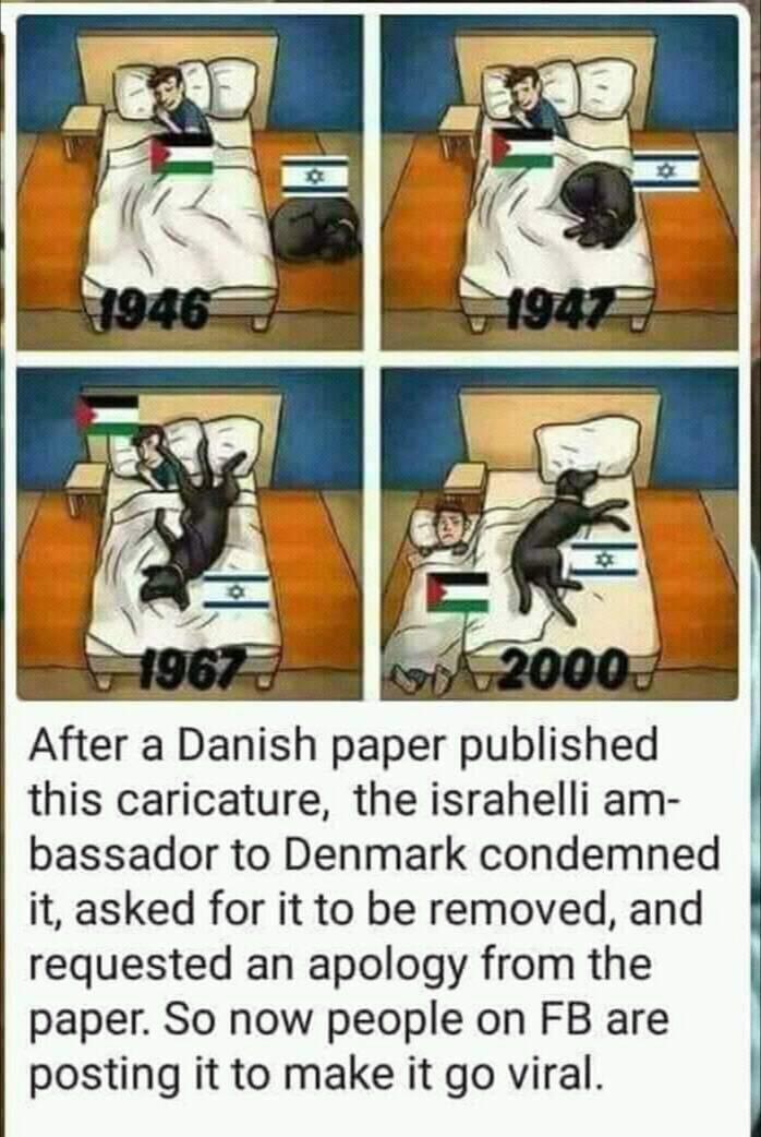وعندما نشروا كاريكاتيراً تعبيرياً تشبيهياً لعلم الاحتلال يُسارع سفير الغفلة الماكر للمطالبة بالإعتذار وبازالة الكاريكاتيرات !!. يا للهول