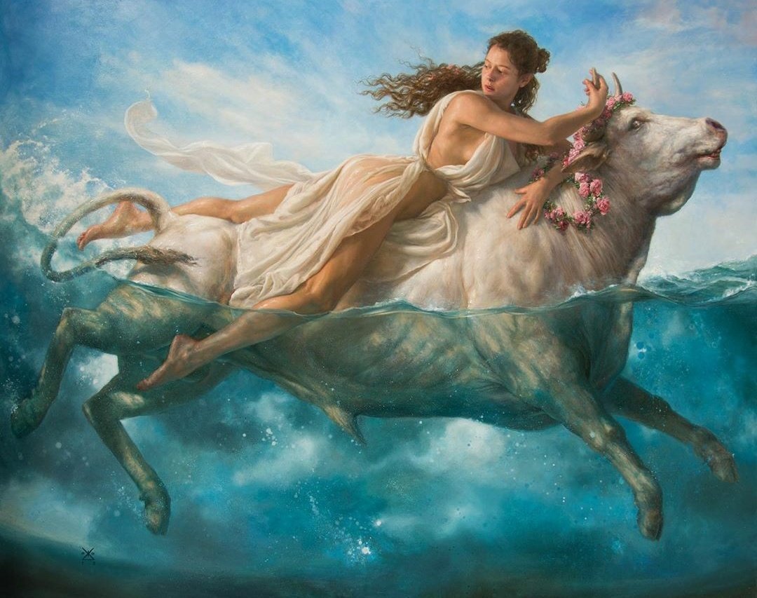 اختطف زيوس – كبير الآلهة – الجميلة أوروبا وهو على هيئة ثور أبيض كبير.. فكرة – مفهوم – الجمال بحد ذاته..