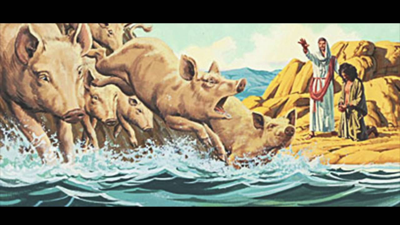 وكما ورد في انجيل لوقا فان الشياطين دخلت في اجساد الخنازير خوفا من المسيح .. اذ طلبت ان تخرج من جسد انسان شرير ينام في المقابر وتدخل في الخنازير .. وماان دخلتها حتى أصيبت الخنازير بالجنون واندفعت نحو الجرف وهوت في البحر الى حتفها فماتت .. وكأنهم عملاء اميريكا في مطار كابول ..