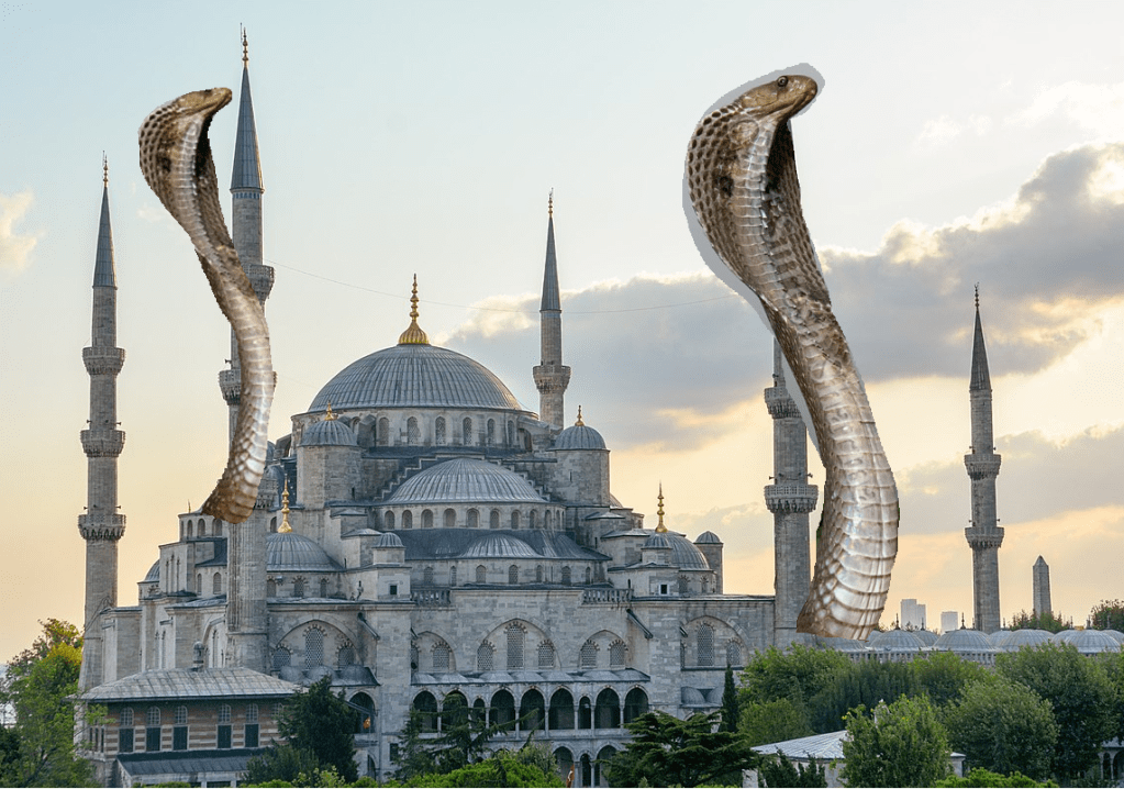 عندما أعلن الرئيس العصملي رجب طيب اردوغان ان المآذن رماحنا والقباب خوذنا .. صرنا نعلم الان حقيقة هذا الشعار .. لأن الماذن صارت ثعابين او التفت عليها الثعابين .. والقباب التي أعدها لنا هي قباب مسجد ميونيخ للأسف ..