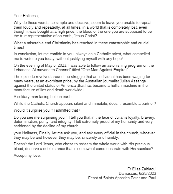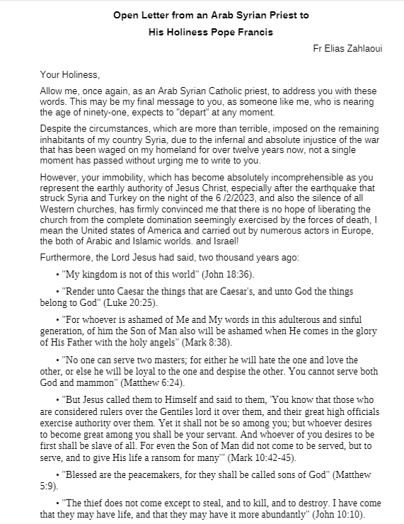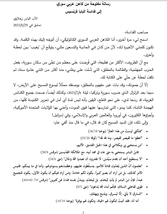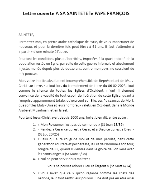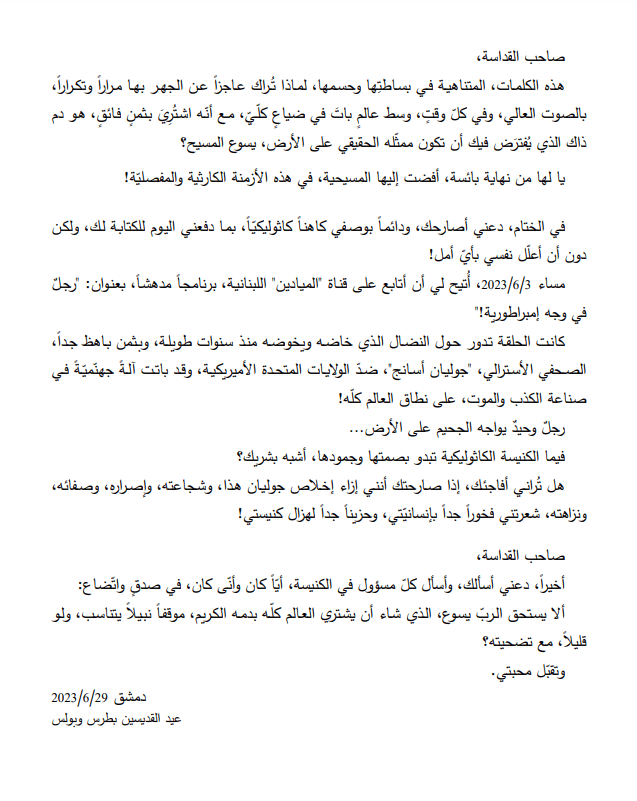اي خطيئة في ألا يرد البابا على صوت كاهن يحمل رسالة السيد المسيح من الصوفانية .. ومن قلب دمشق ..؟؟!!