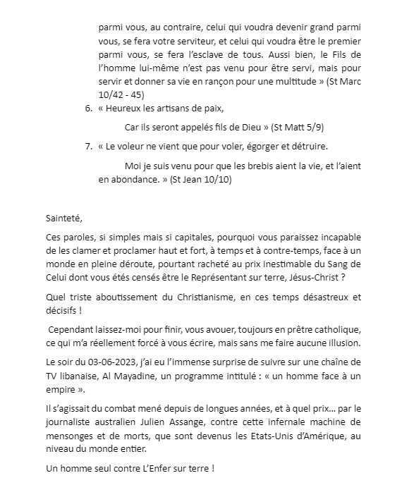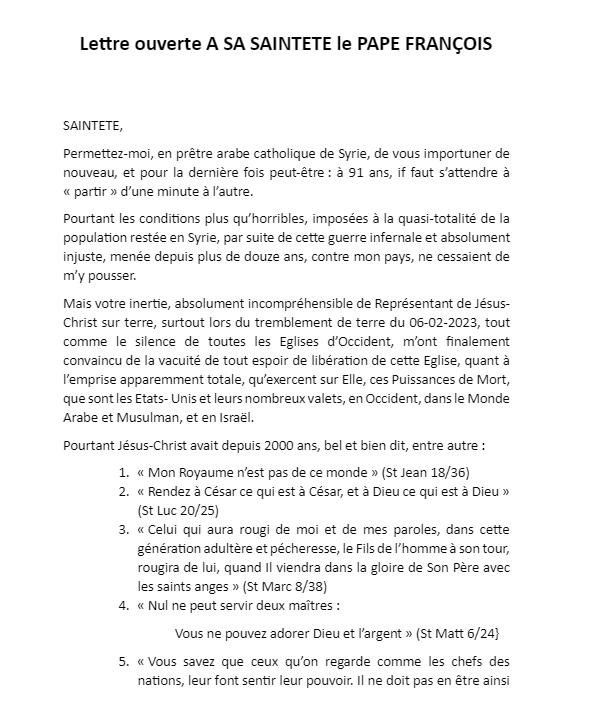 ليس المهم ان يرد البابا او لايرد .. لكن المهم ان فهمنا للسيد المسيح هو مايفعله كاهن دمشق .. المسيح الذي لايتخلى عن رسالته ولو علق على الصليب .. ولايتوقف عن التبشير .. يولد في مغارة ويقوم من المغارة ولاتتوقف مهمته مهما أصاب الوجود من صمم ..