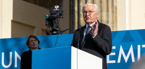 في مظاهرة براندنبورغ كان الرئيس الالماني ذات نفسه يشارك بحماسٍ لافت في المظاهرة الحاشدة حيث قال حرفياً انه يعاني معهم ويقوم بالصلاة لهم والتوسّل معهم!!!! ، ودعانا الرئيس، نحن جميع المواطنين في المانيا الى حماية الحياة اليهودية في الداخل … مضيفاً انه يعلم ان هذه واجبات الدولة الالمانية لكنه اضاف (وفاجأني اكثر وأكثر) واصفاً طلبه الشريف بأنه إلتزام وواجب مدني !! وتمنى علينا وطلب منا جميعاً قبول هذا الواجب المدني والقيام به !!! ( منيح ما قال انه واجب مقدس!!) !!. يا لللهول