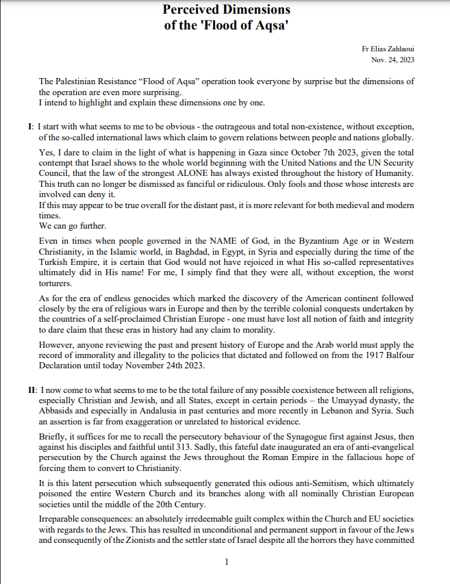 1 Response to “طوفان الأقصى” وبعضٌ من أبعاده المستشفّة – بقلم: الأب الياس زحلاوي