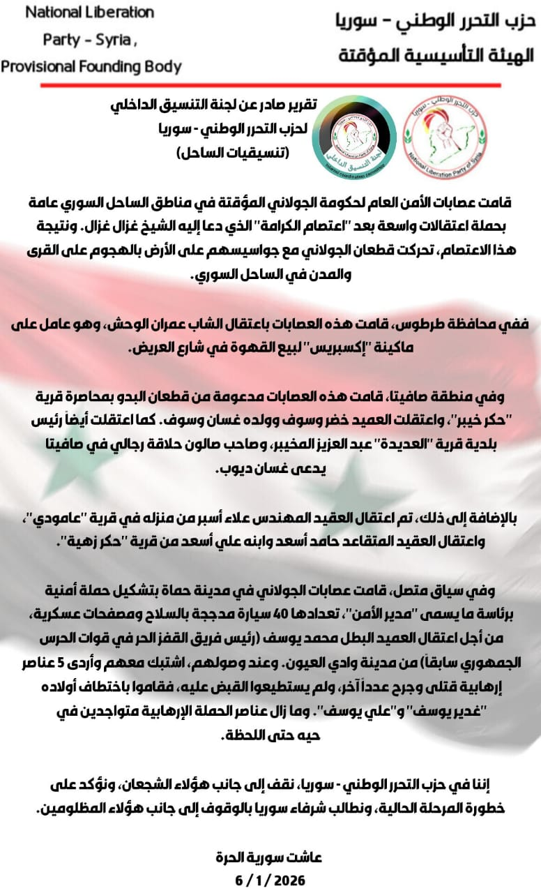 حزب التحرر الوطني – تقرير صادر عن لجنة التنسيق الداخلي – تنسيقيات الساحل