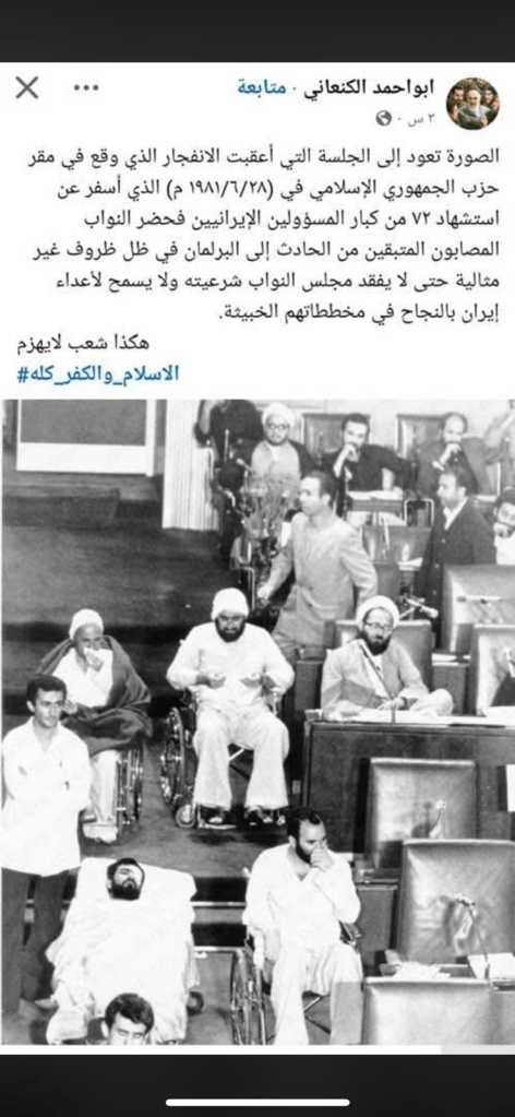 ففي يوم واحد تم نسف كل القيادة الايرانية .. ومن بينهم الرئيس بهشتي نفسه .. ونسف حزب الجمهوري الاسلامي وطاره 72 شخصية قيادية .. ولكن ايران تابعت .. ووصلت اليوم الى ايران مع مدن الصواريخ .. لتكون القوة التي لم يعد العالم قادرا على تجاهلها ..