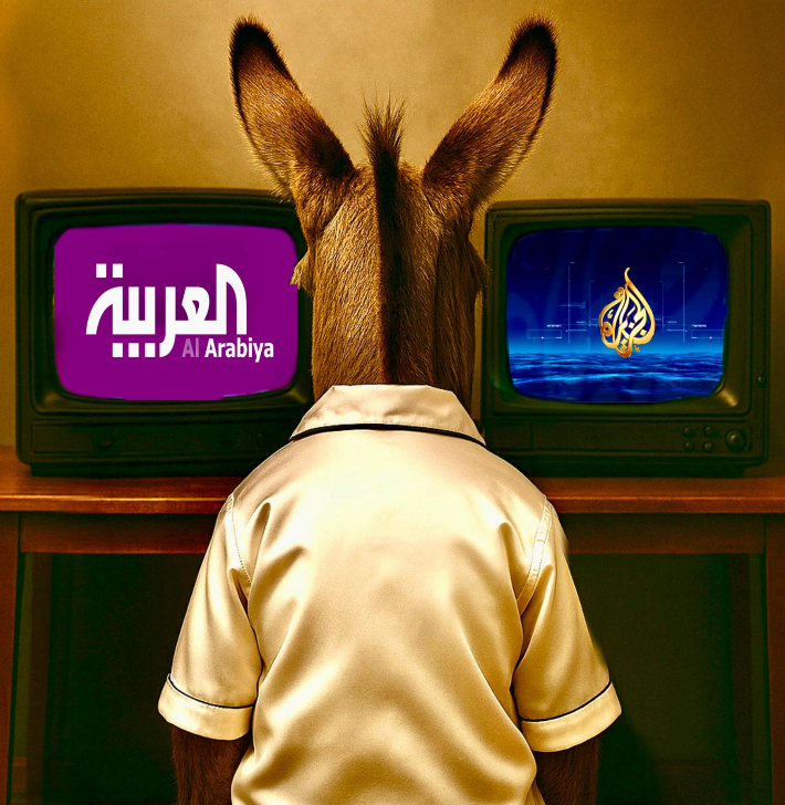 🔺اخيرا وليس اخرا مذيع مع ضيف في المنتصف (اي نقطة ارتكاز ) يقدم بانه الخبير الاستراتيجي والفيلسوف والعالم ملقن مسبقا وظيفته الأساسية ترسيخ مفاهيم هذه الصور بعقل المشاهد