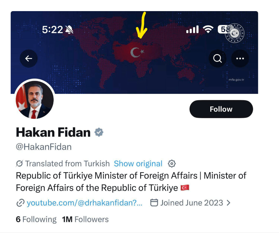 ولكن لم يحصل ان وضع اي ايراني او اي مسؤول ايراني خارطة تتجاوز خارطة ايران .. ولو ظهرت خارطة ايران التوسعية التي تغطي اي جزء من العالم العربي أو أي جزيرة على بروفايل اي مسؤول ايراني لقامت الدنيا ولم تقعد .. ولكن حقان فيدان يتصرف مع العالم العربي على انه غير موجود بل على انه عالم عثماني وسيستعيده .. ولافرق بينه وبين نتنياهو الذي يريد ايضا استعادة الارض التي وعده الرب فيها ..